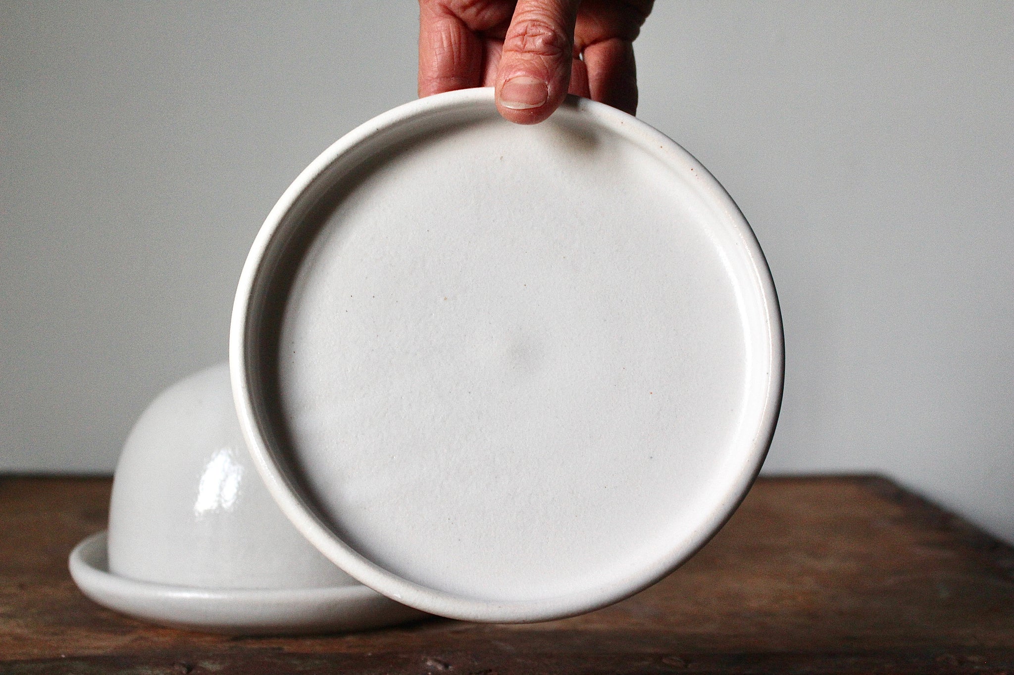 A beautiful way to serve butter or cheese. For counter storage and serving. Please note, these images are representative. Each batch that comes out of the kiln is slightly different....