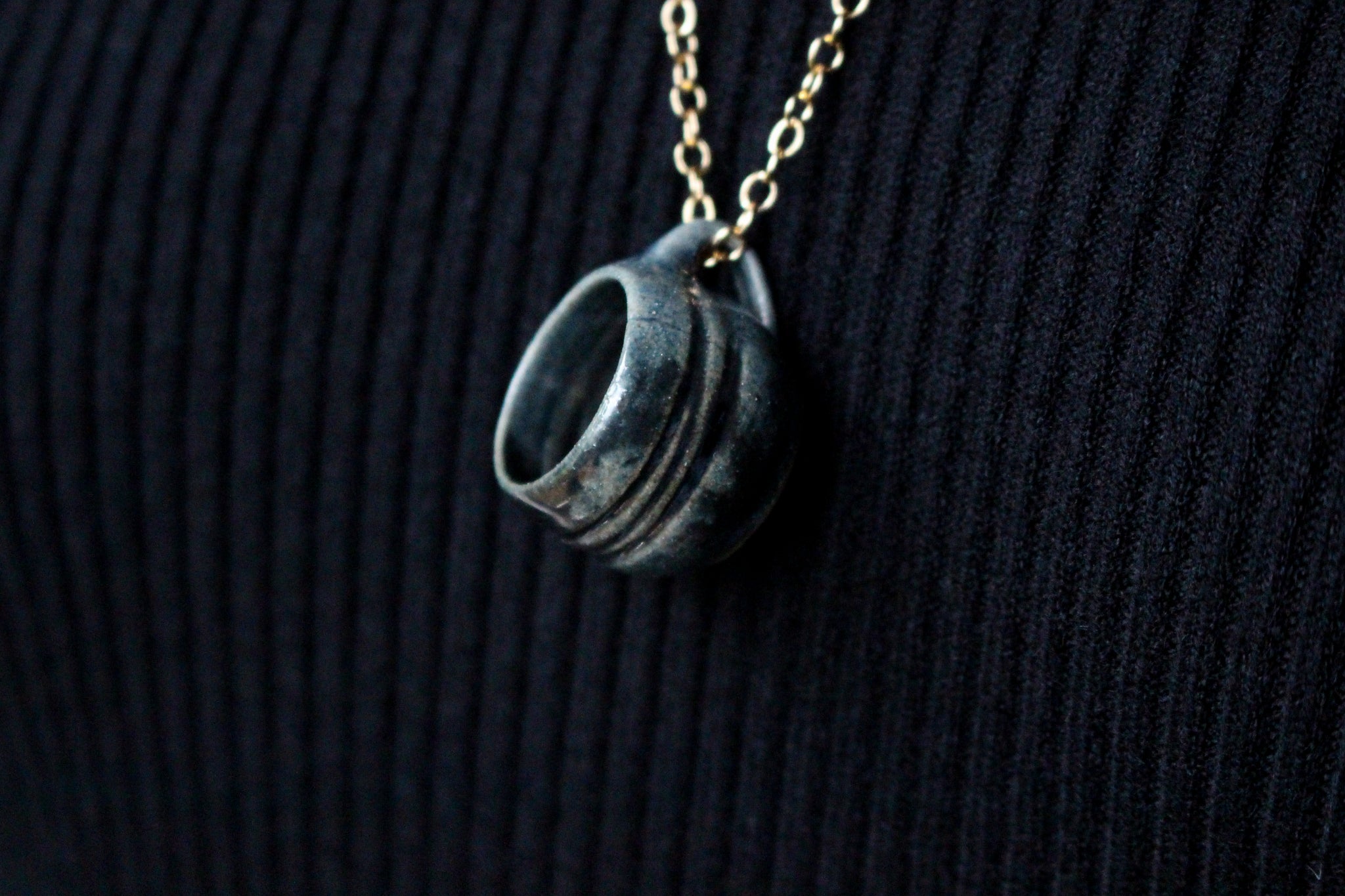 These arched pendants borrow their texture from a beautiful limpet shell that I found at the seashore in the Canary Islands. I press soft clay onto the shell’s patterned surface...
