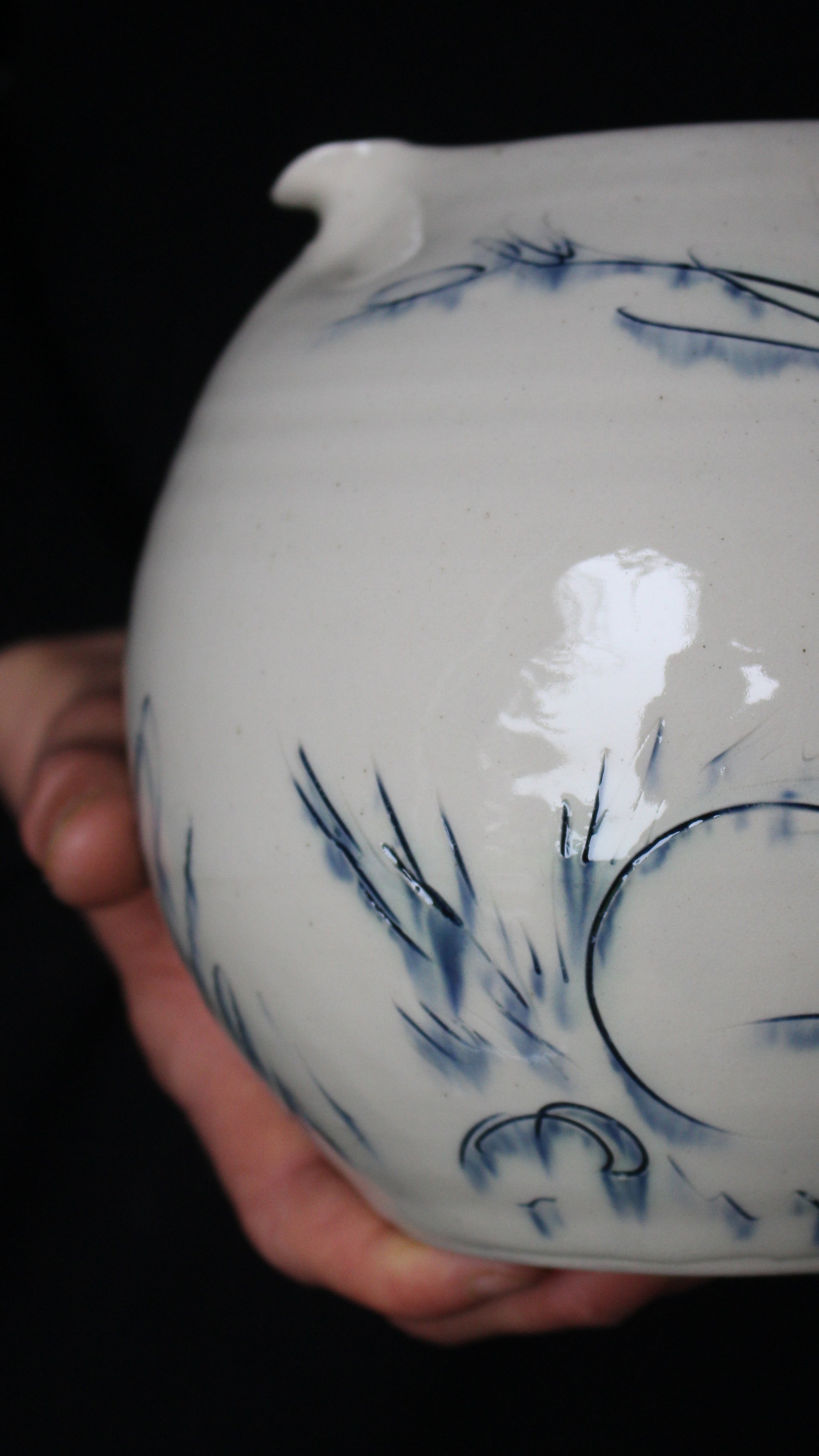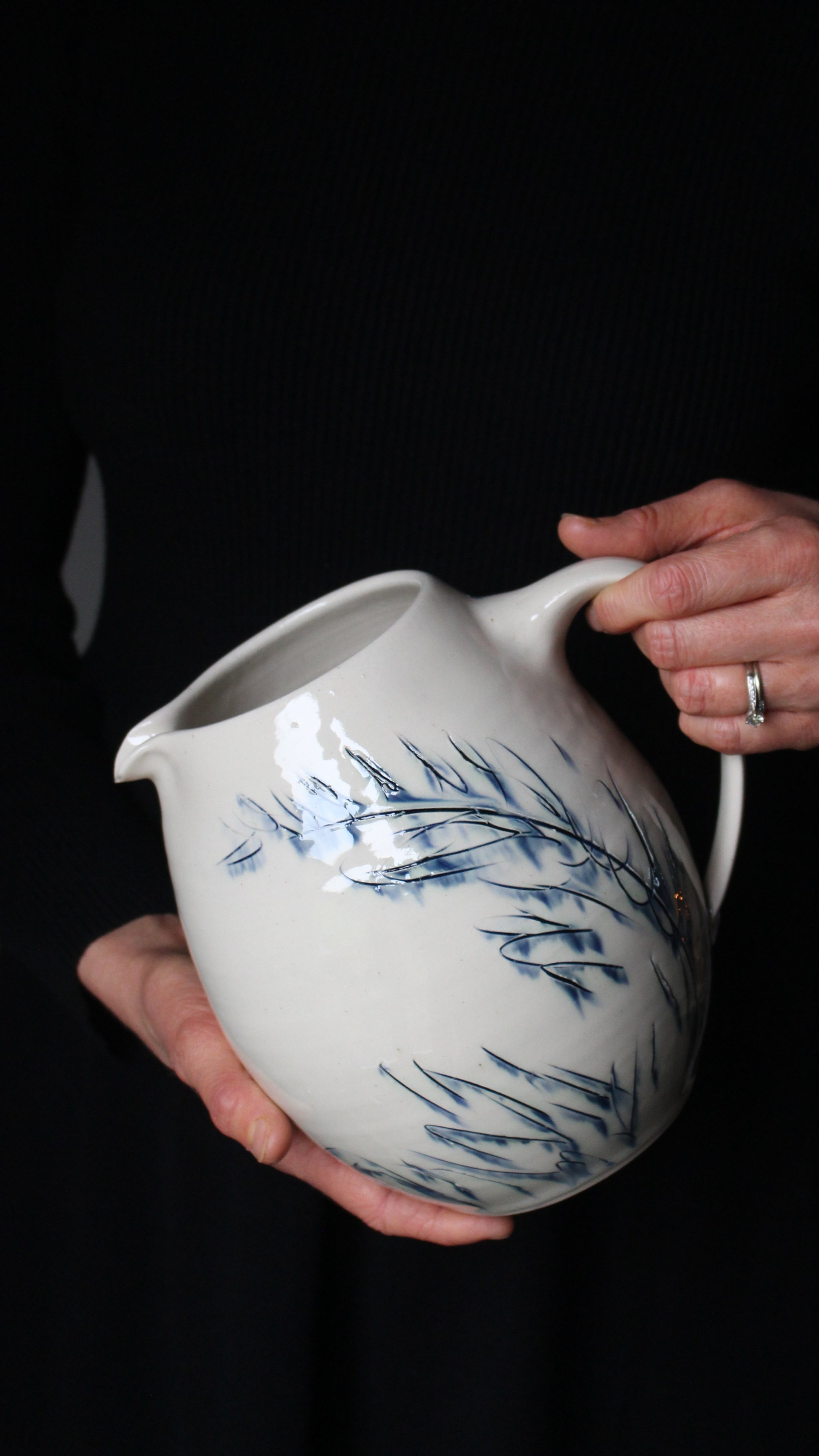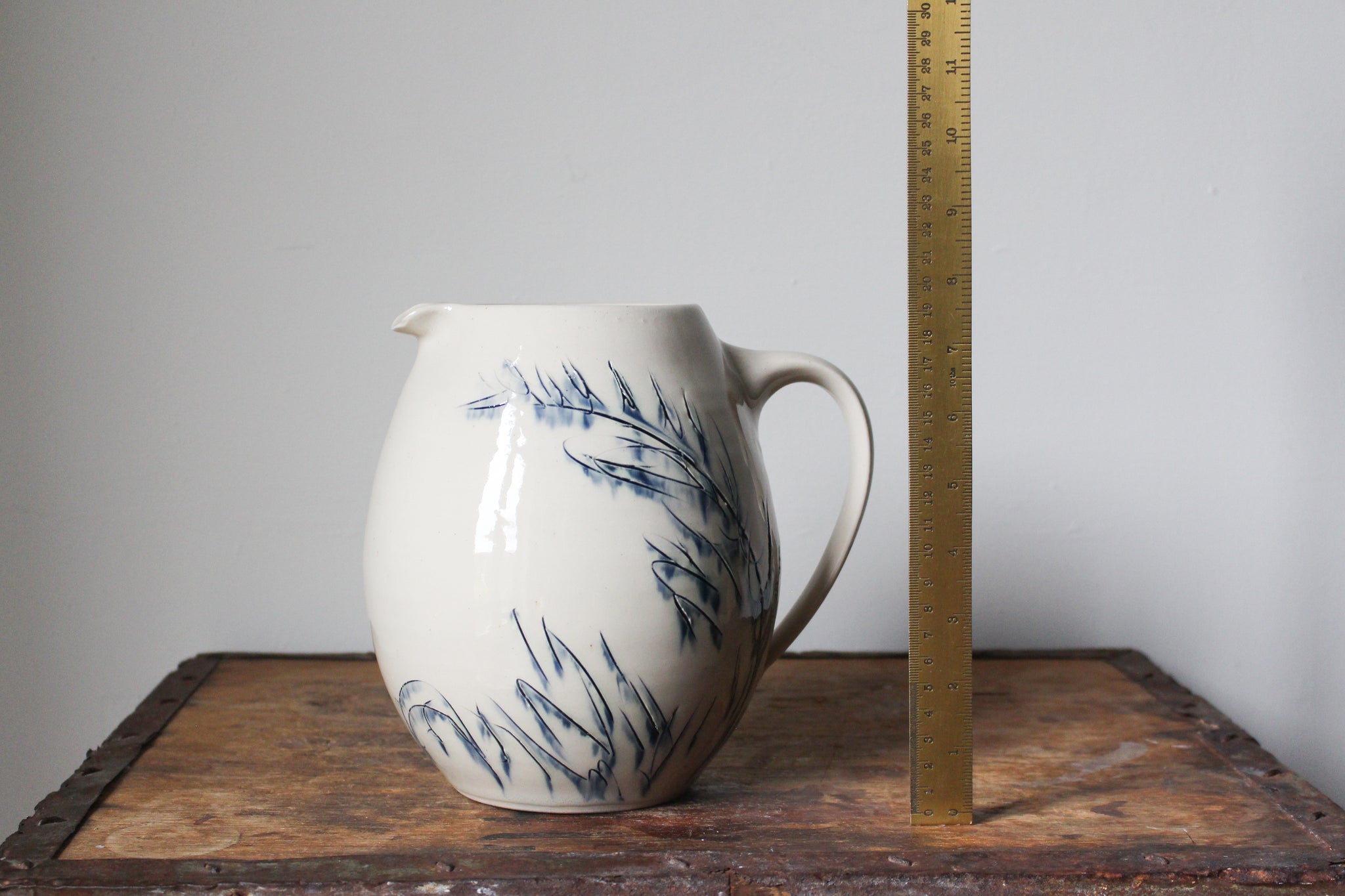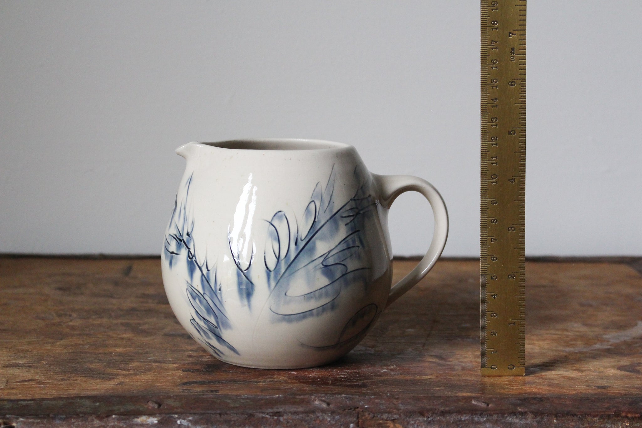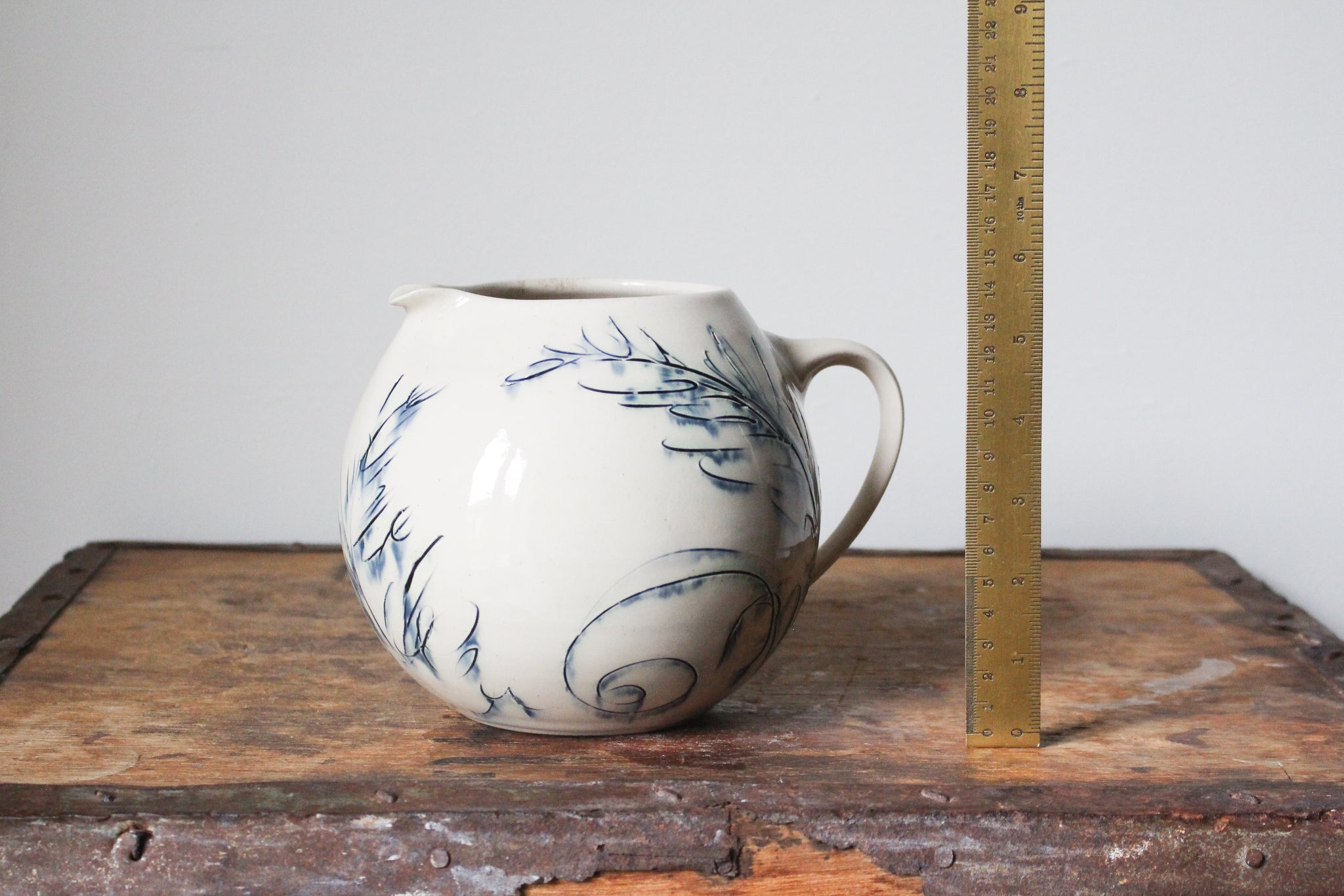 – Sold OutThe whimsical, freehand drawing on the surface of this jug makes it truly unique. This piece is watertight and safe for use with food and drink. See image with ruler...