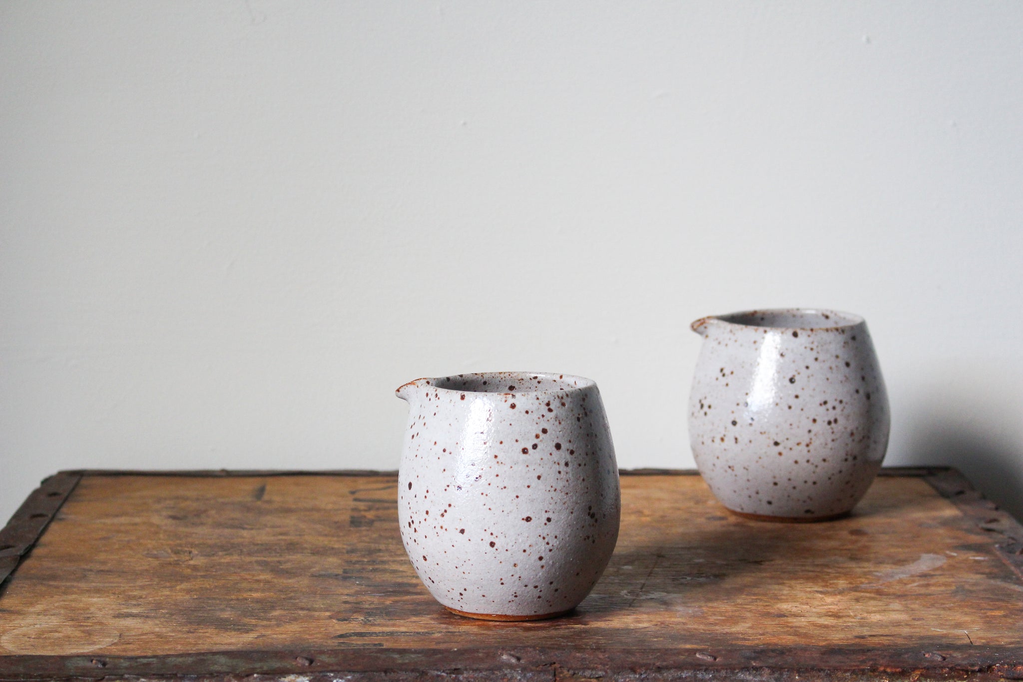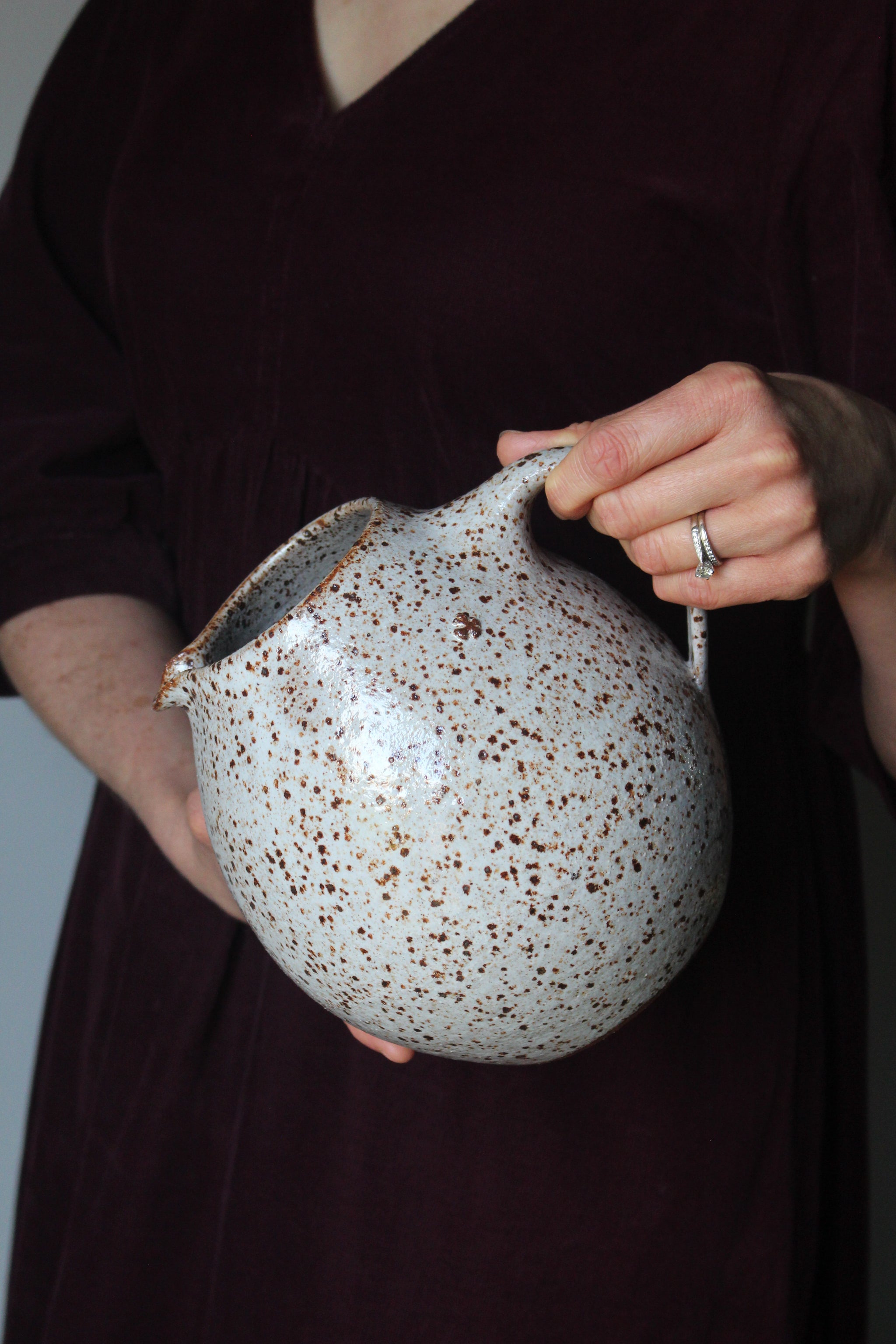 No-frills kinda gal. Clean and simple, speckled/white handleless jug. I fashioned this clean shape on the pottery wheel, and added the little pouring spout by passing one finger over the...