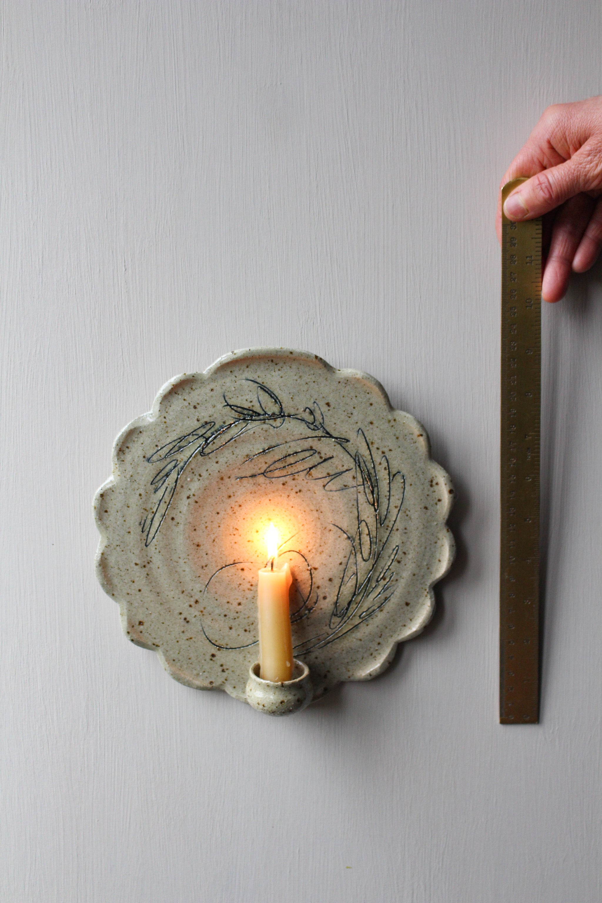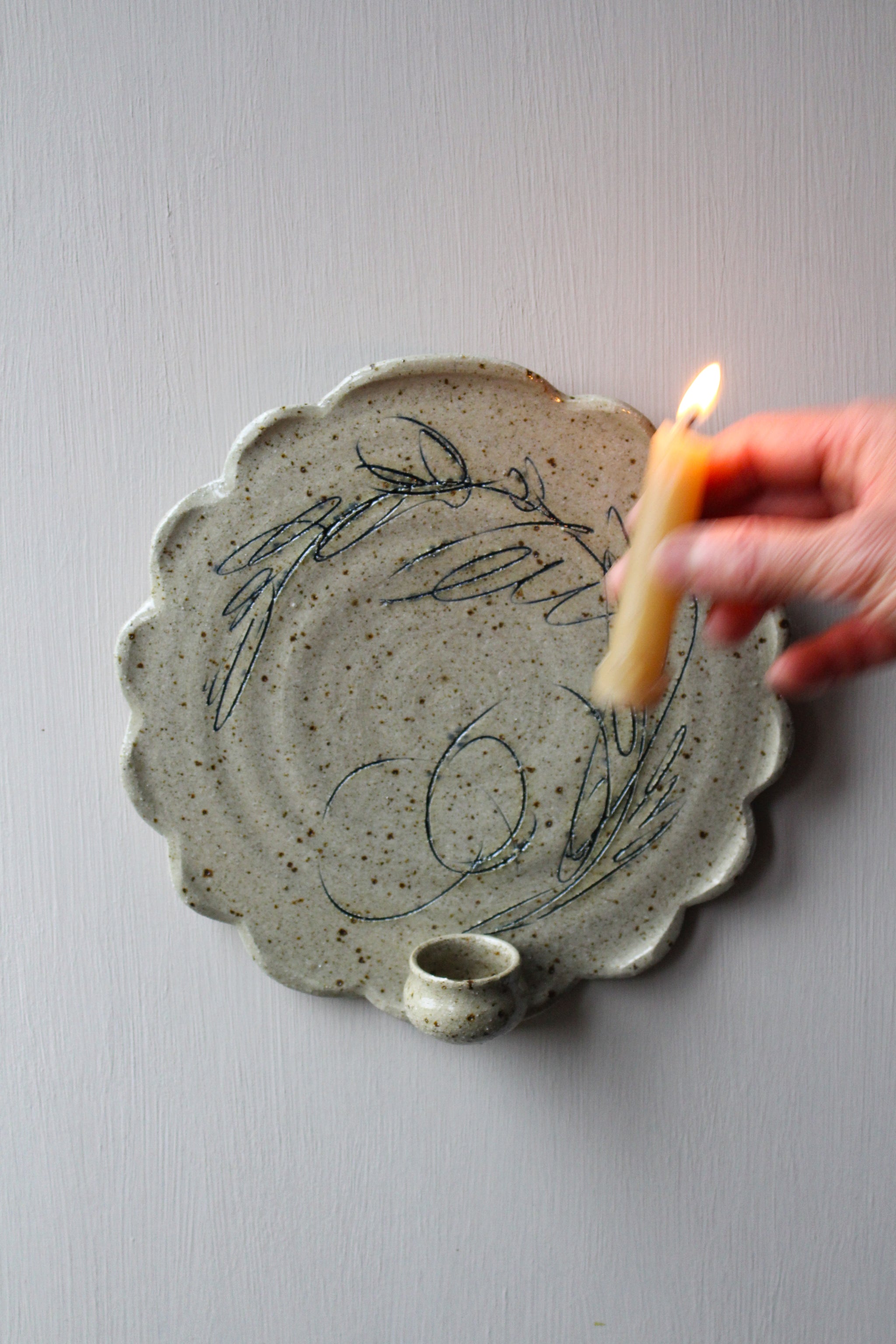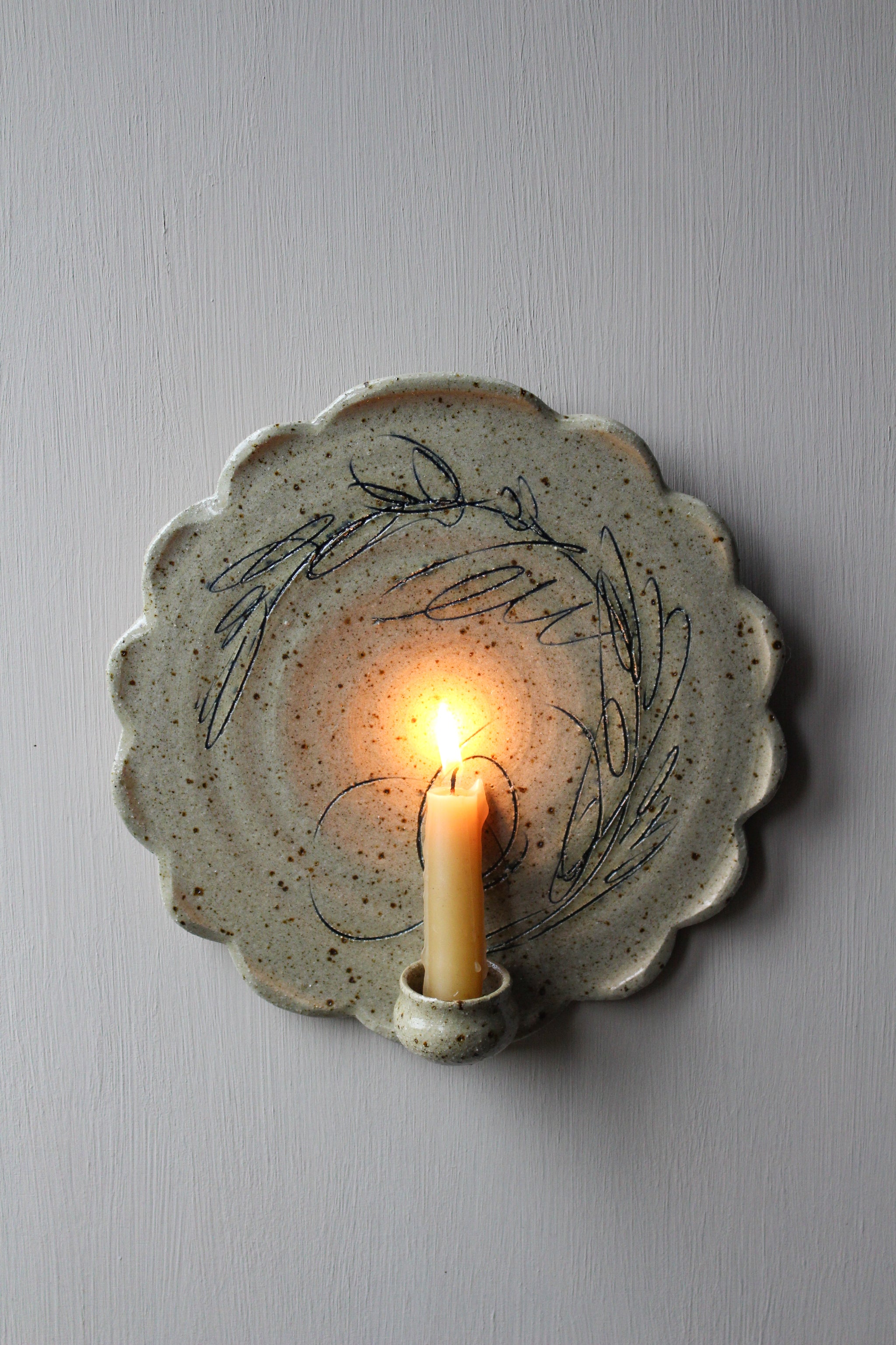 A wonderfully textured, hand-carved, wall sconce, candle holder… and the very first of its kind from Illyria Pottery! These whimsical pieces are absolutely full of character. Each is unique, and...