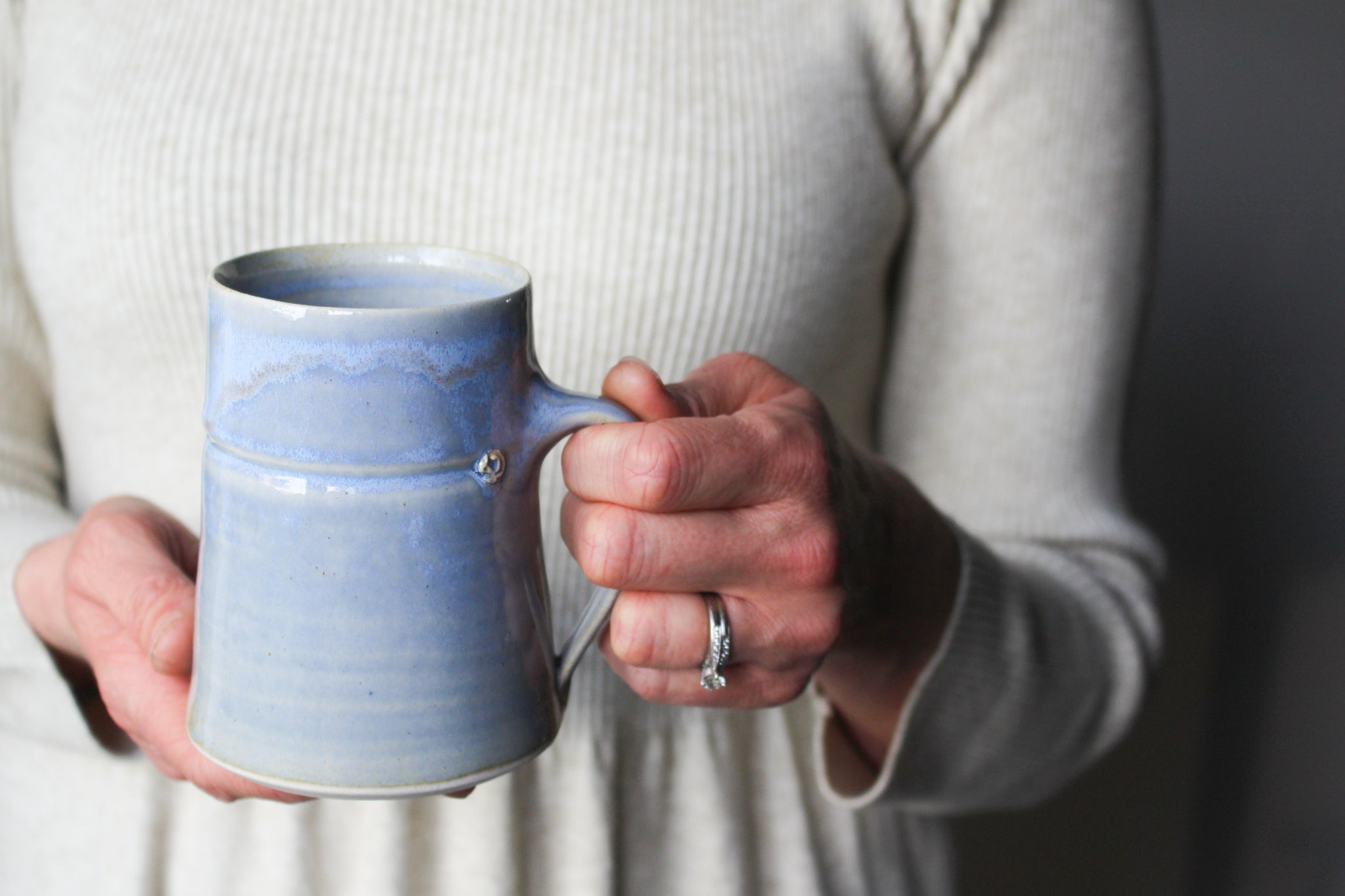 – Sold OutI threw this mug on the pottery wheel, and attached a smooth, shapely handle once it was partially dried. I've finished it with a smooth, blue glaze. All my mugs are...