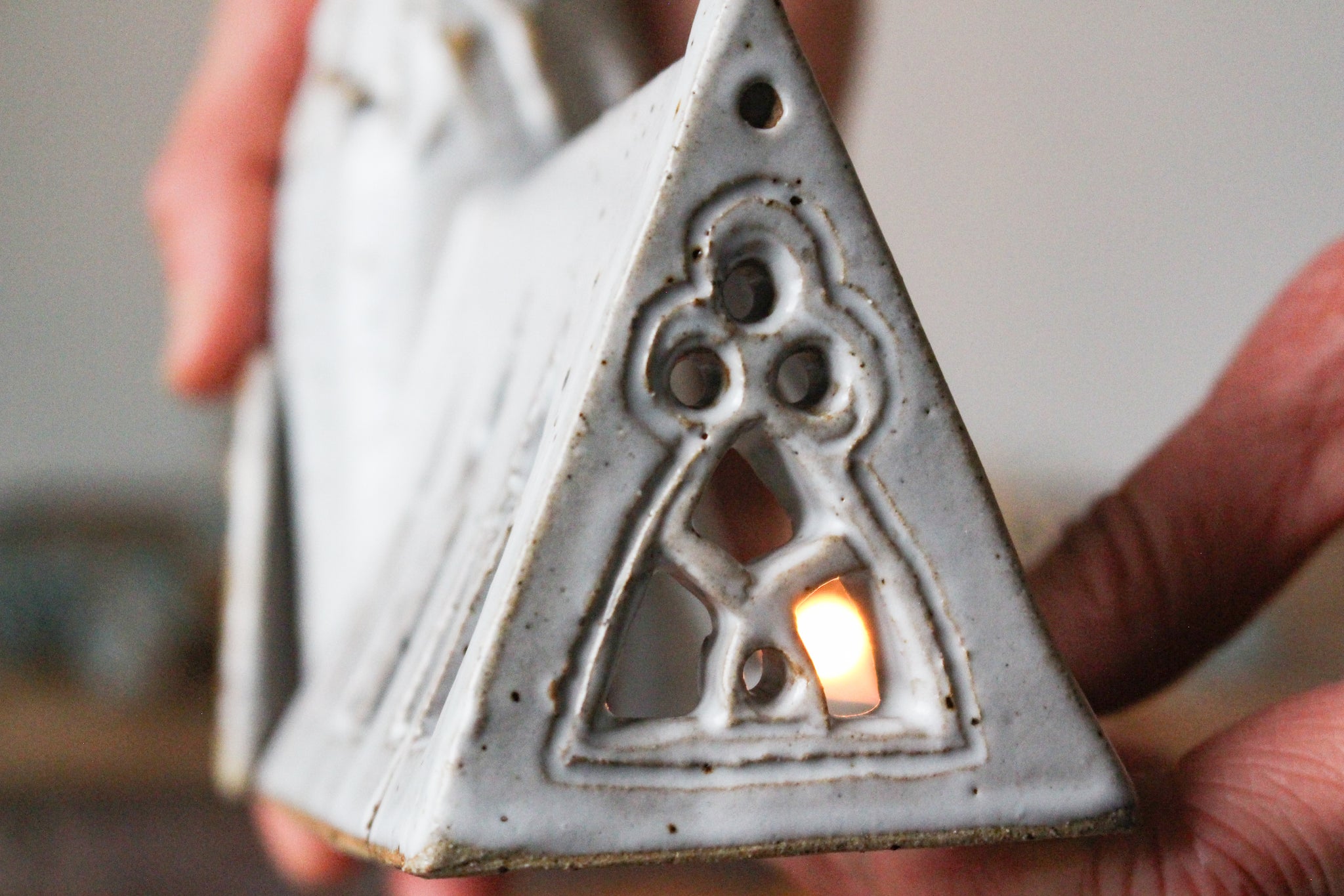 This angular pendant borrow its texture from vintage wallpaper reclaimed during the renovation of the flats above our former shop and studio in Oxford, England. Clay was pressed into the...